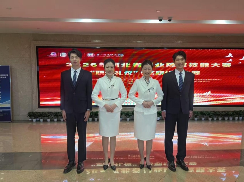 近日,由河北省教育厅主办,河北省文化创意职教集团、河北省礼仪文化教育学会共同承办的2026年河北省职业院校技能大赛职业礼仪赛项(高职组)在唐山举办。来自全省31所高职院校的180余名参赛选手参加了比赛。由财经旅游学院教师刘立新、张铃鹿指导,财经旅游学院梁亚蕾、张鑫悦、高虎林、李博旭四名同学组成的参赛队凭借对礼仪知识的扎实掌握、礼仪仪态的优雅展示、礼仪应用场景的专业展示、流畅的表达沟通和凝心聚力的团队写作以及优秀的职业素养展示,获得三等奖。备赛中,指导教师团队深入剖析大赛规则,结合赛事特点,制定了科学系统的备赛方案。参赛学生积极认真,进行了全方位、高强度的训练。比赛中,参赛同学沉着冷静,自信从容,获得了不错的成绩。